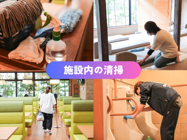 私は清掃のお仕事は未経験だったのですが、周りのスタッフがとても優しく丁寧にサポートしてくれました。重い物の持ち運びが無いので体への負担も少なく女性や年配の方も安心です。 週末のみの勤務や、家事や育児と両立しながら働いたり、ライフスタイルに合わせて勤務できるので、助かっています。