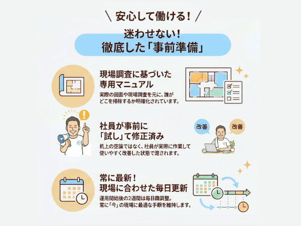 ①未経験スタートが90%以上!清掃マニュアル完備で安心♪